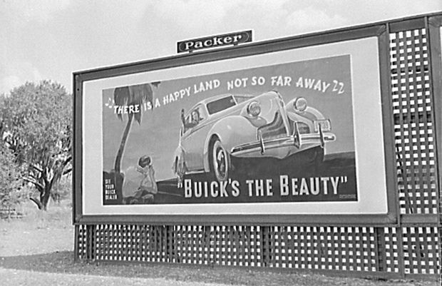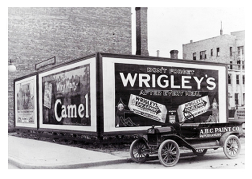 - Стандартный рекламный щит был впервые создан в Америке в 1900 году. Тогда же придумали устанавливать билборды чередой вдоль улиц и магистралей. Идея размещать вдоль широких магистралей рекламные сообщения получила широкое распространение лишь спустя двадцать лет, когда дороги США заполнились автомобилями. В этот период времени машины начали активно скупаться для личного пользования. Став более мобильными, американцы взялись беспорядочно колесить между крупными городами и даже штатами. Размещенная на массивных конструкциях реклама то и дело бросалась им в глаза.