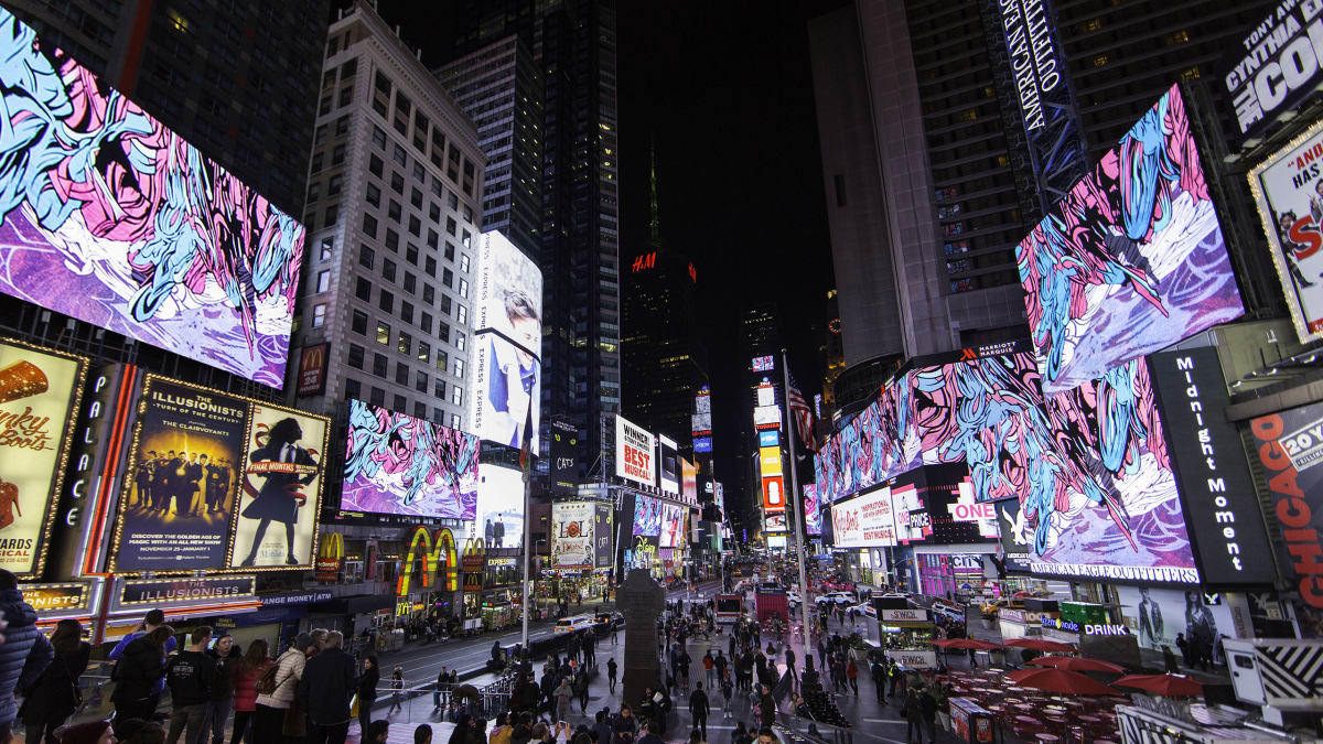 Жизнь на Таймс-сквер кипит в любое время суток. Эта площадь является одним из самых посещаемых мест в мире. Рекламу, транслируемую на огромных экранах, ежедневно просматривают толпы людей. Кажется, будто воздух здесь пропитан электричеством. Часто сменяющиеся картинки гипнотизируют прохожих, а неоновые вывески излучают едкий свет. Здесь приветствуются новые технологии, такие как интерактивная реклама, в которую может быть вовлечен абсолютно любой человек с улицы.